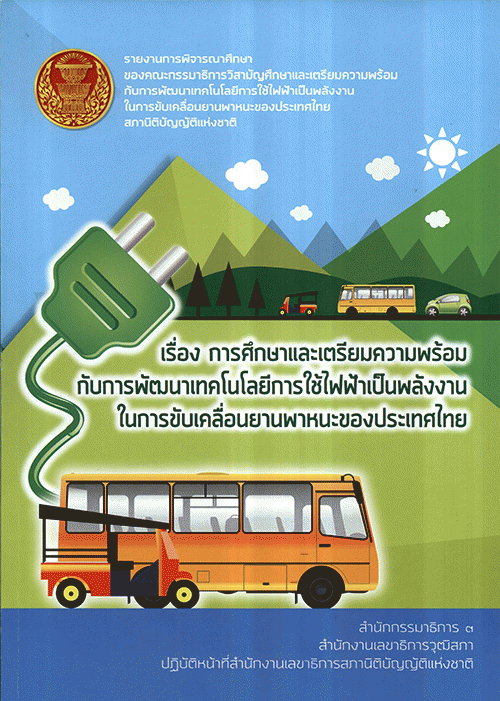 รายงานการพิจารณาศึกษา ของคณะกรรมาธิการวิสามัญศึกษาและเตรียมความพร้อมกับการพัฒนาเทคโนโลยีการใช้ไฟฟ้าเป็นพลังงานในการขับเคลื่อนยานพาหนะของประเทศไทย สภานิติบัญญัติแห่งชาติ เรื่อง การศึกษาและเตรียมความพร้อมกับการพัฒนาเทคโนโลยีการใช้ไฟฟ้าเป็นพลังงานในการขับเคลื่อนยานพาหนะของประเทศไทย / สำนักกรรมาธิการ 3 สำนักงานเลขาธิการวุฒิสภา ปฏิบัติหน้าที่สำนักงานเลขาธิการสภานิติบัญญัติแห่งชาติ.
