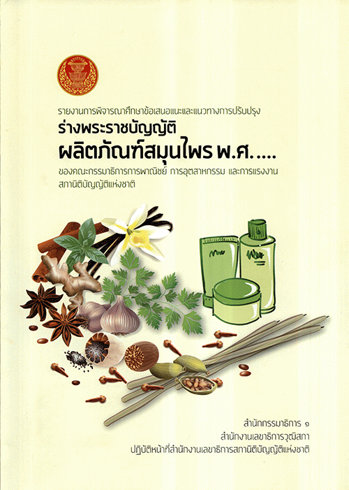 รายงานการพิจารณาศึกษาข้อเสนอแนะและแนวทางการปรับปรุง ร่างพระราชบัญญัติผลิตภัณฑ์สมุนไพร พ.ศ. .... ของคณะกรรมาธิการการพาณิชย์ การอุตสาหกรรม และการแรงงาน สภานิติบัญญัติแห่งชาติ / สำนักกรรมาธิการ 1 สำนักงานเลขาธิการวุฒิสภา ปฏิบัติหน้าที่สำนักงานเลขาธิการสภานิติบัญญัติแห่งชาติ.