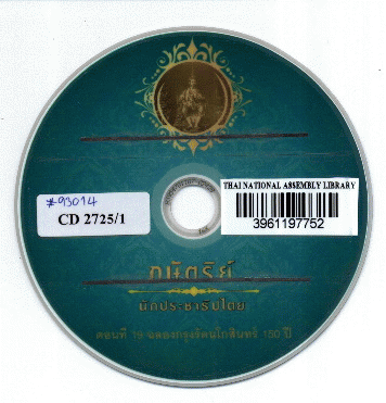 National Assembly Library of Thailand | Audio-Visual Materials collection | CD 2725/1 (เรียกดูชั้นหนังสือ(เปิดด้านล่าง)) | C. 1 | พร้อมให้บริการ | 3961197752 | |