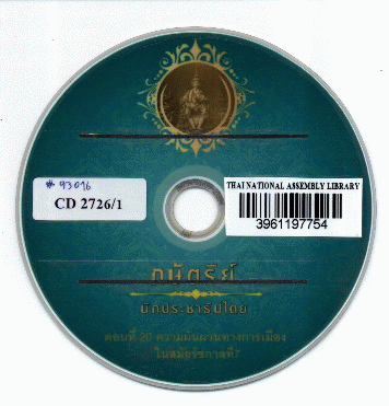 National Assembly Library of Thailand | Audio-Visual Materials collection | CD 2726/1 (เรียกดูชั้นหนังสือ(เปิดด้านล่าง)) | C. 1 | พร้อมให้บริการ | 3961197754 | |