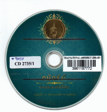 National Assembly Library of Thailand | Audio-Visual Materials collection | CD 2735/1 (เรียกดูชั้นหนังสือ(เปิดด้านล่าง)) | C. 1 | พร้อมให้บริการ | 3961197772 |