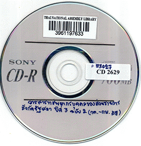 National Assembly Library of Thailand | Audio-Visual Materials collection | CD 2629 (เรียกดูชั้นหนังสือ(เปิดด้านล่าง)) | พร้อมให้บริการ | 3961197633 |