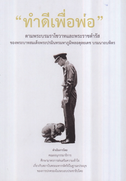 "ทำดีเพื่อพ่อ" ตามพระบรมราโชวาทและพระราชดำรัสของพระบาทสมเด็จพระปรมินทรมหาภูมิพลอดุลยเดช บรมนาถบพิตร / คณะอนุกรรมาธิการศึกษามาตรการส่งเสริมความเข้าใจเกี่ยวกับสถาบันพระมหากษัตริย์ในฐานะประมุขของการปกครองระบอบประชาธิิปไตย.