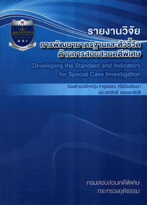 การพัฒนามาตรฐานและตัวชี้วัดด้านการสอบสวนคดีพิเศษ = Development the standard and indicators for special case investigation / ร้อยตำรวจโทหญิง จารุวรรณ ศรีเมืองวัฒนา, เสกสิทธิ์ สวรรยาธิปัติ.