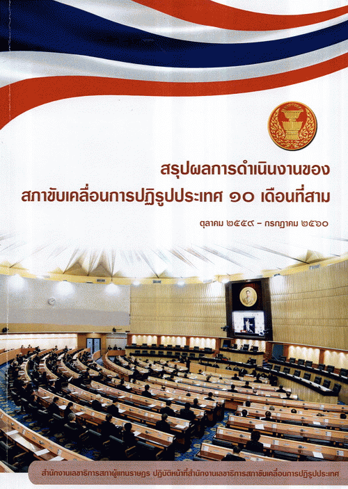 สรุปผลการดำเนินงานของสภาขับเคลื่อนการปฏิรูปประเทศ 10 เดือนที่สาม ตุลาคม 2559 - กรกฎาคม 2560 / คณะกรรมการจัดทำหนังสือสรุปผลการดำเนินงานของสภาขับเคลื่อนการปฏิรูปประเทศ สำนักงานเลขาธิการสภาผู้แทนราษฎร ปฏิบัติหน้าที่สำนักงานเลขาธิการสภาขับเคลื่อนการปฏิรูปประเทศ.