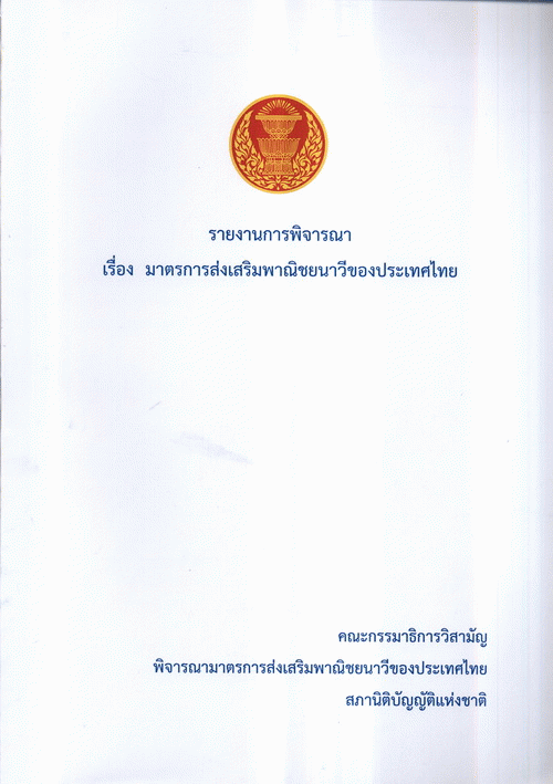 รายงานการพิจารณา เรื่อง มาตรการส่งเสริมพาณิชยนาวีของประเทศไทย คณะกรรมาธิการวิสามัญพิจารณามาตรการส่งเสริมพาณิชยนาวีของประเทศไทย สภานิติบัญญัติแห่งชาติ / สำนักกรรมาธิการ 3 สำนักงานเลขาธิการวุฒิสภา ปฏิบัติหน้าที่สำนักงานเลขาธิการสภานิติบัญญัติแห่งชาติ.