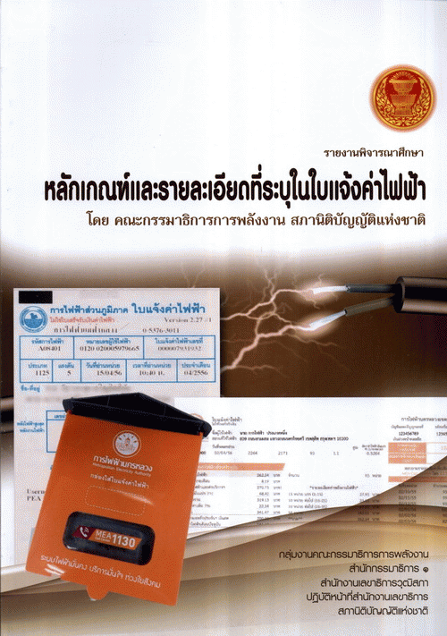 รายงานพิจารณาศึกษาหลักเกณฑ์และรายละเอียดที่ระบุในใบแจ้งค่าไฟฟ้า โดย คณะกรรมาธิการการพลังงาน สภานิิติบัญญัติแห่งชาติ / สำนักกรรมาธิการ 1 สำนักงานเลขาธิการวุฒิสภา ปฏิบัติหน้าที่สำนักงานเลขาธิการสภานิติบัญญัติแห่งชาติ.