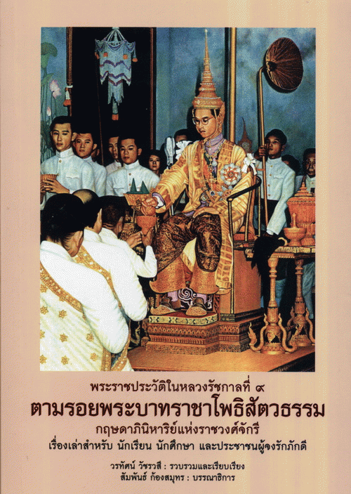 พระราชประวัติในหลวงรัชกาลที่ 9 ตามรอยพระบาทราชาโพธิสัตวธรรม กฤษดาภินิหารแห่งราชวงศ์จักรี : เรื่องเล่าสำหรับ นักเรียน นักศึกษา และประชาชนผู้จงรักภักดี / วรทัศน์ วัชรวสี รวบรวมเรียบเรียง ; สัมพันธ์ ก้องสมุทร บรรณาธิการ.