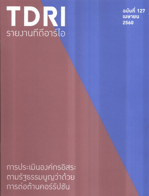 การประเมินองค์กรอิสระตามรัฐธรรมนูญว่าด้วยการต่อต้านคอร์รัปชัน (รายงานทีดีอาร์ไอ ฉบับที่ 127 เมษายน 2560) / บรรณาธิการ จิรากร ยิ่งไพบูลย์วงศ์.