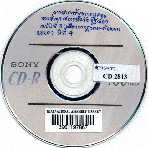 National Assembly Library of Thailand | Audio-Visual Materials collection | CD 2813 (เรียกดูชั้นหนังสือ(เปิดด้านล่าง)) | พร้อมให้บริการ | 3961197867 |