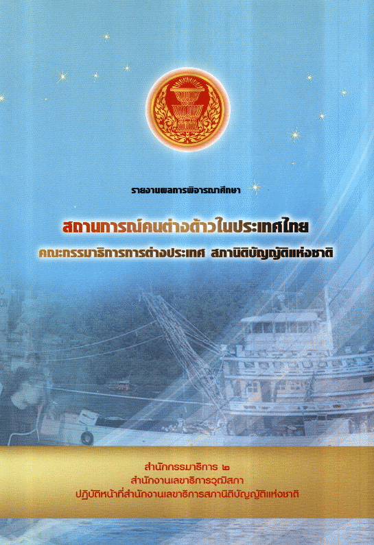 รายงานผลการพิจารณาศึกษา เรื่อง สถานการณ์คนต่างด้าวในประเทศไทย คณะกรรมาธิการการต่างประเทศ สภานิติบัญญัติแห่งชาติ / สำนักกรรมาธิการ 2 สำนักงานเลขาธิการวุฒิสภา ปฏิบัติหน้าที่สำนักงานเลขาธิการสภานิติบัญญัติแห่งชาติ.