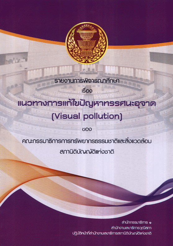 รายงานการพิจารณาศึกษา เรื่อง แนวทางการแก้ไขปัญหาทรรศนะอุจาด (Visual pollution) ของคณะกรรมาธิการการทรัพยากรธรรมชาติและสิ่งแวดล้อม สภานิิติบัญญัติแห่งชาติ / สำนักกรรมาธิการ 1 สำนักงานเลขาธิการวุฒิสภา ปฏิบัติหน้าที่สำนักงานเลขาธิการสภานิติบัญญัติแห่งชาติ.