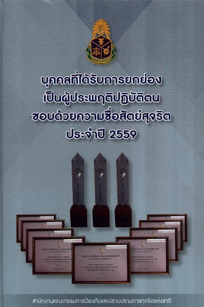 บุคคลที่ได้รับการยกย่องเป็นผู้ประพฤติปฏิบัติตนชอบด้วยความซื่อสัตย์สุจริต ประจำปี 2559 / สำนักงานคณะกรรมการป้องกันและปราบปรามการทุจริตแห่งชาติ.