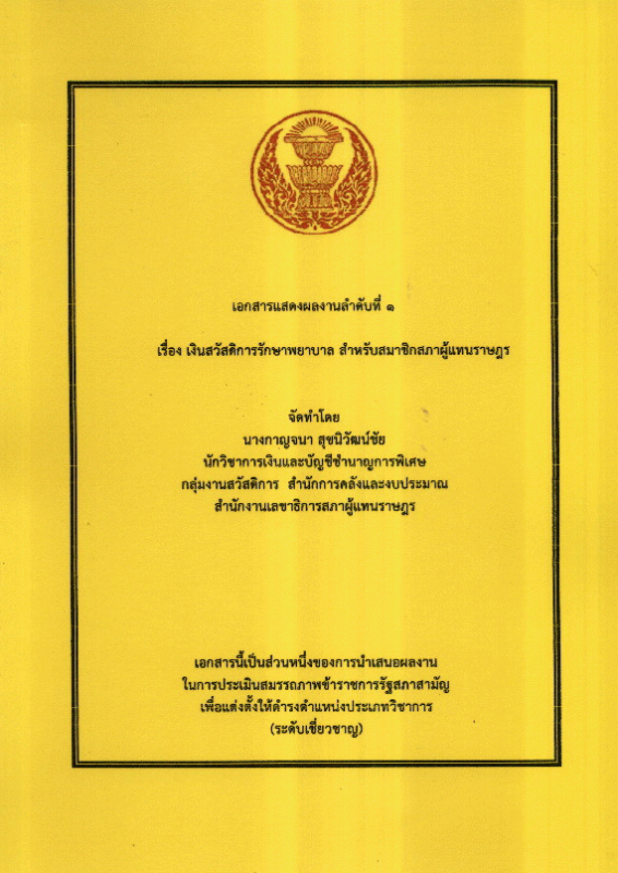 เงินสวัสดิการรักษาพยาบาล สำหรับสมาชิกสภาผู้แทนราษฎร / กาญจนา สุขนิวัฒน์ชัย.