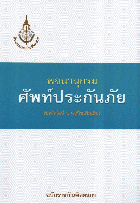 พจนานุกรมศัพท์ประกันภัย ฉบับราชบัณฑิตยสภา / สำนักงานราชบัณฑิตยสภา.