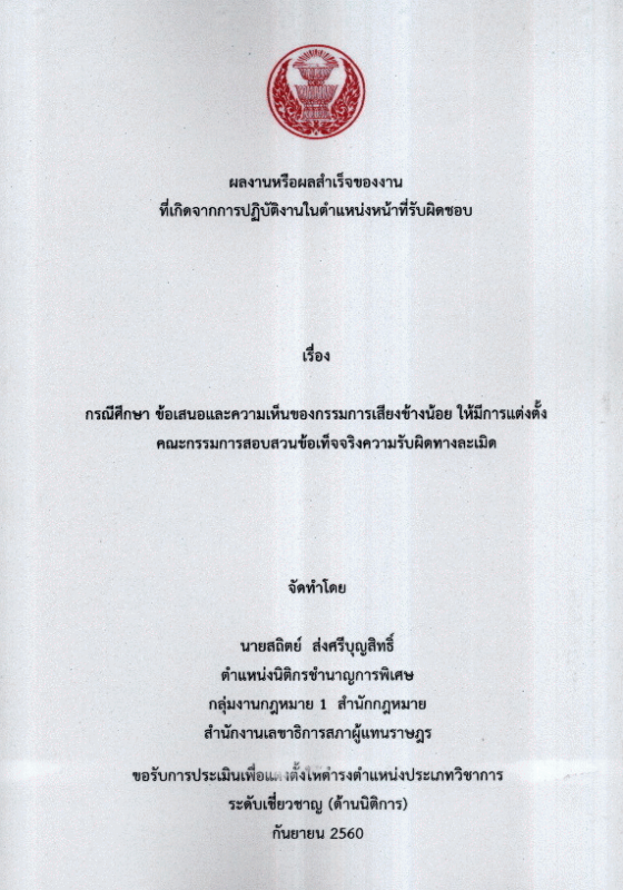 กรณีศึกษา ข้อเสนอและความเห็นของกรรมการเสียงข้างน้อย ให้มีการแต่งตั้งคณะกรรมการสอบสวนข้อเท็จจริงความรับผิดทางละเมิด / สถิตย์ ส่งศรีบุญสิทธิ์.