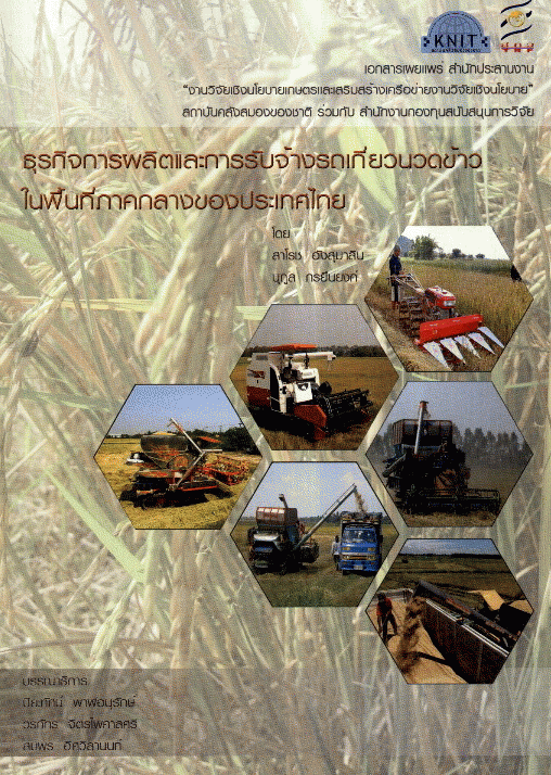ธุรกิจการผลิตและการรับจ้างรถเกี่ยวนวดข้าวในพื้นที่ภาคกลางของประเทศไทย / โดย สาโรช อังสุมาลิน และ นุกูล กรยืนยงค์ ; บรรณาธิการ ปิยะทัศน์ พาฬอนุรักษ์, วรภัทร จิตรไพศาลศรี, สมพร อิศวิลานนท์.
