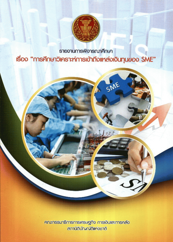 รายงานการพิจารณาศึกษาของ คณะกรรมาธิการการเศรษฐกิจ การเงินและการคลัง สภานิติบัญญัติแห่งชาติ เรื่อง การศึกษาวิเคราะห์การเข้าถึงแหล่งเงินทุนของ SME / สำนักกรรมาธิการ 1 สำนักงานเลขาธิการวุฒิสภา ปฏิบัติหน้าที่สำนักงานเลขาธิการสภานิติบัญญัติแห่งชาติ.