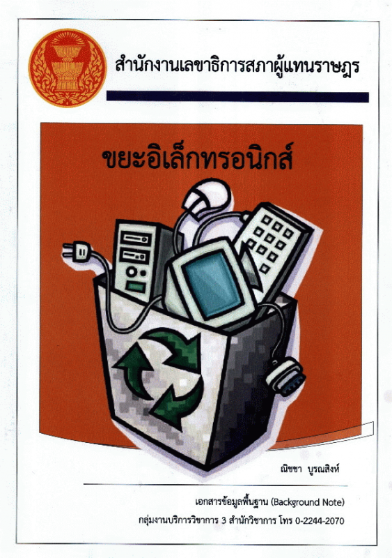 ขยะอิเล็กทรอนิกส์ / สำนักวิชาการ สำนักงานเลขาธิการสภาผู้แทนราษฎร.