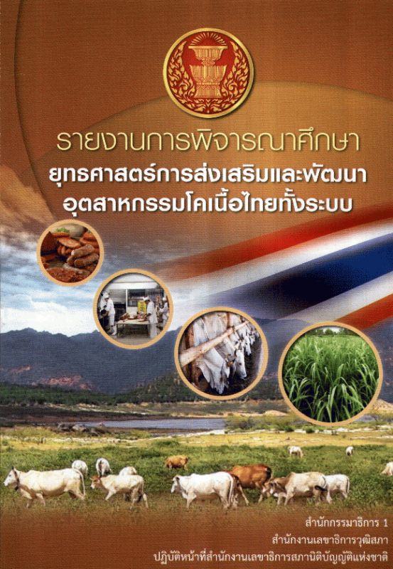 รายงานการพิจารณาศึกษายุทธศาสตร์การส่งเสริมและพัฒนาอุตสาหกรรมโคเนื้อไทยทั้งระบบ / สำนักกรรมาธิการ 1 สำนักงานเลขาธิการวุฒิสภา ปฏิบัติหน้าที่สำนักงานเลขาธิการสภานิติบัญญัติแห่งชาติ.