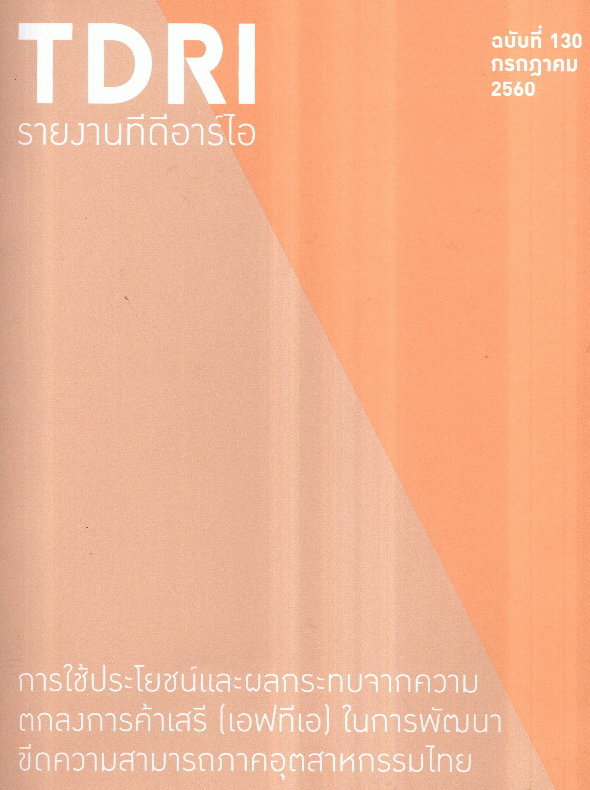 การใช้ประโยชน์และผลกระทบจากความตกลงการค้าเสรี (เอฟทีเอ) ในการพัฒนาขีดความสามารถภาคอุตสาหกรรมไทย (รายงานทีดีอาร์ไอ ฉบับที่ 130 กรกฎาคม 2560) / สรุปและเรียบเรียง สายใจ วิทยาอนุมาส.