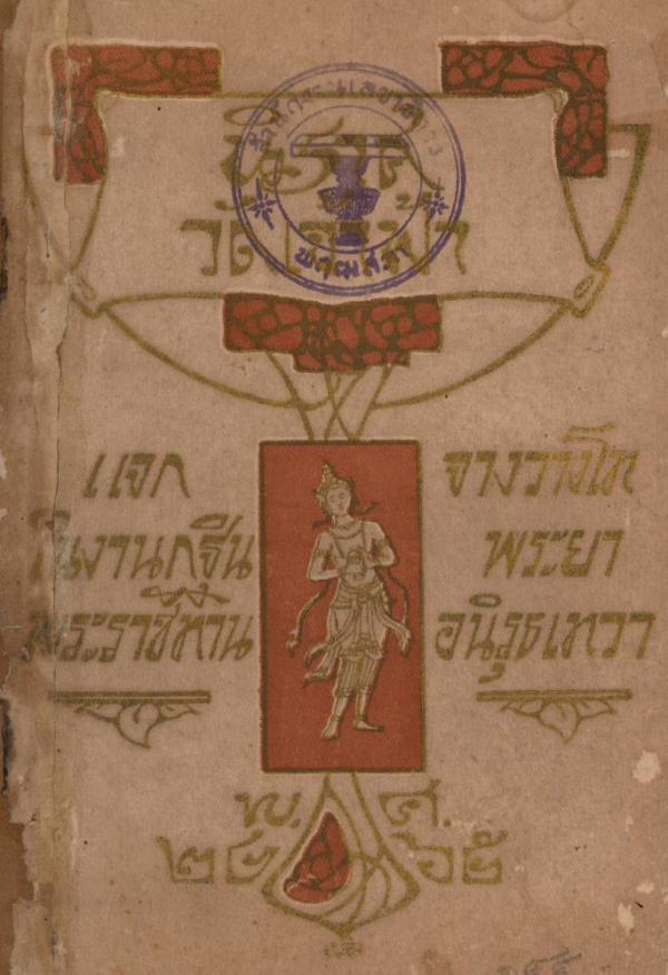 แจกในการกฐินพระราชทาน จางวางโท พระยาอนิรุทธเทวา อธิบดีกรมมหาดเล็ก ณวัดปรมัยยิกาวาส จังหวัดนนทบุรี วันที่ 16 ตุลาคม พระพุทธศักราช 2465.