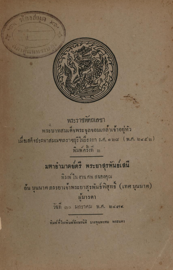 National Assembly Library of Thailand | Rarebook collection | Rarebook shelves | อศ อ152พ 2474 (เรียกดูชั้นหนังสือ(เปิดด้านล่าง)) | ไม่อนุญาตให้ยืมออก | 3961214327 |