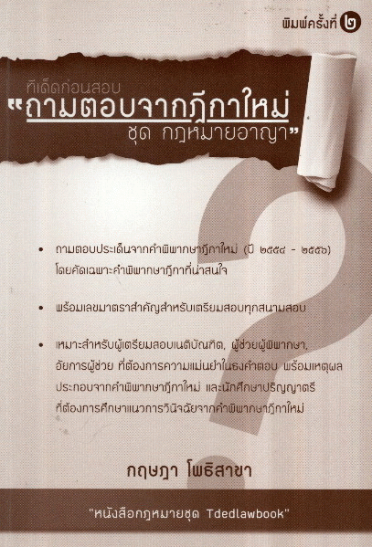 ทีเด็ดก่อนสอบ ถามตอบจากฎีกาใหม่ ชุด กฎหมายอาญา / กฤษฎา โพธิสาขา.