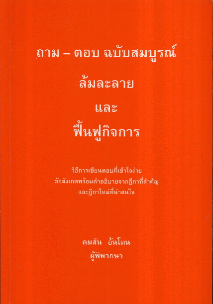 ถาม-ตอบ ฉบับสมบูรณ์ : ล้มละลาย และฟื้นฟูกิจการ / คมสัน อ้นโตน.