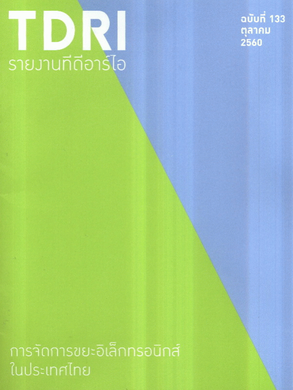 การจัดการขยะอิเล็กทรอนิกส์ในประเทศไทย (รายงานทีดีอาร์ไอ ฉบับที่ 133 ตุลาคม 2560) / สรุปและเรียบเรียง สายใจ วิทยาอนุมาส ; บรรณาธิการบริหาร จิรากร ยิ่งไพบูลย์วงศ์.