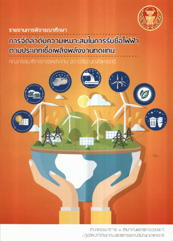 รายงานการพิจารณาศึกษาการจัดลำดับความเหมาะสมในการรับซื้อไฟฟ้าตามประเภทเชื้อเพลิงพลังงานทดแทน คณะกรรมาธิการการพลังงาน สภานิติบัญญัติแห่งชาติ / สำนักกรรมาธิการ 1 สำนักงานเลขาธิการวุฒิสภา ปฏิบัติหน้าที่สำนักงานเลขาธิการสภานิติบัญญัติแห่งชาติ.
