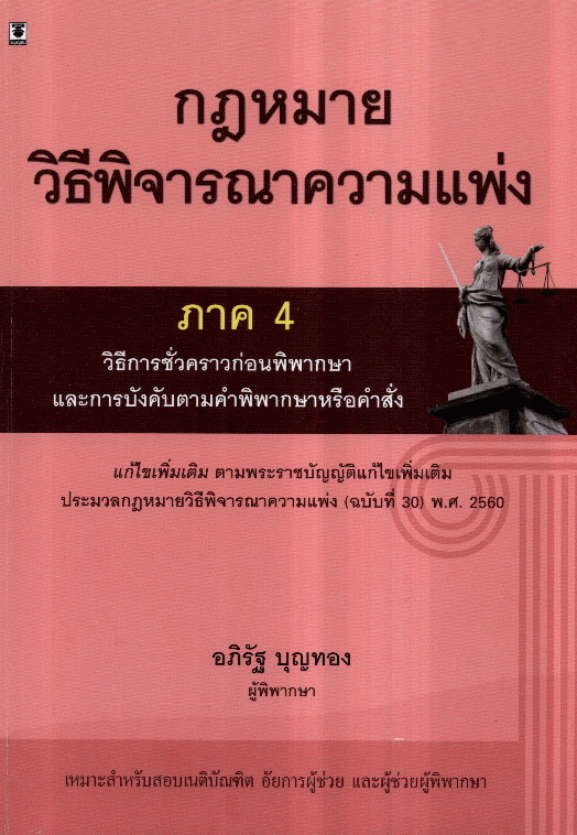 กฎหมายวิธีพิจารณาความแพ่ง ภาค 4 วิธีการชั่วคราวก่อนพิพากษา และการบังคับตามคำพิพากษาหรือคำสั่ง / อภิรัฐ บุญทอง.