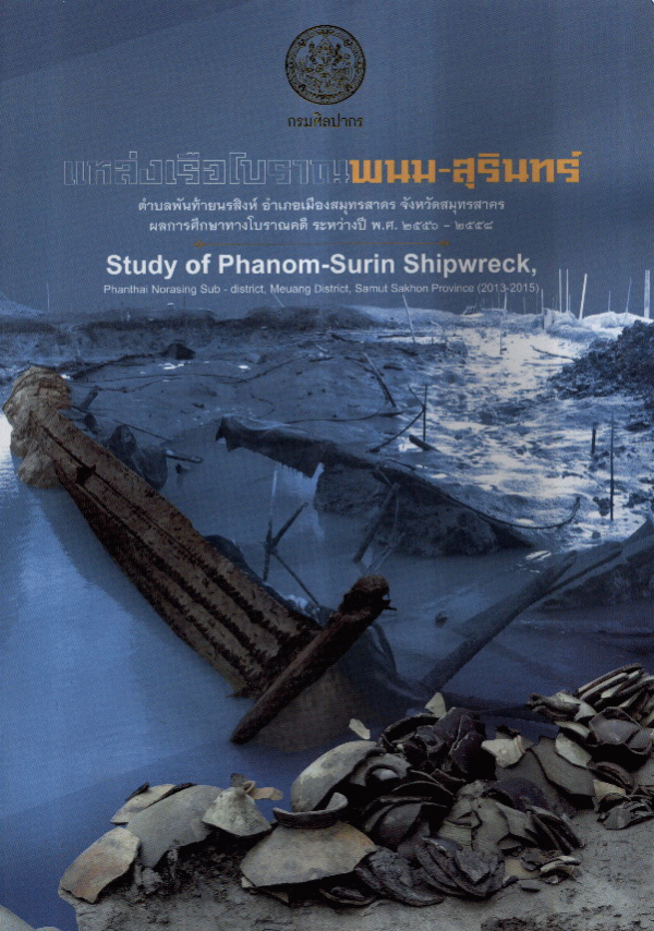 แหล่งเรือโบราณพนม-สุรินทร์ ตำบลพันท้ายนรสิงห์ อำเภอเมืองสมุทรสาคร จังหวัดสมุทรสาคร ผลการศึกษาทางโบราณคดี ระหว่างปี พ.ศ. 2556 - 2558.