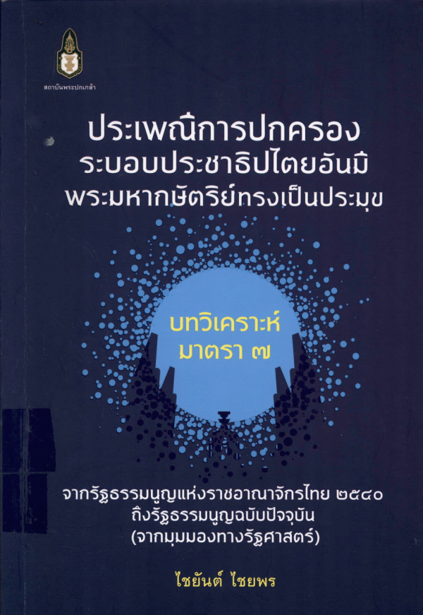 ประเพณีการปกครองระบอบประชาธิปไตยอันมีพระมหากษัตริย์ทรงเป็นประมุข : บทวิเคราะห์มาตรา 7 จากรัฐธรรมนูญแห่งราชอาณาจักรไทย 2540 ถึงรัฐธรรมนูญฉบับปัจจุบัน (จากมุมมองทางรัฐศาสตร์) / ไชยันต์ ไชยพร.