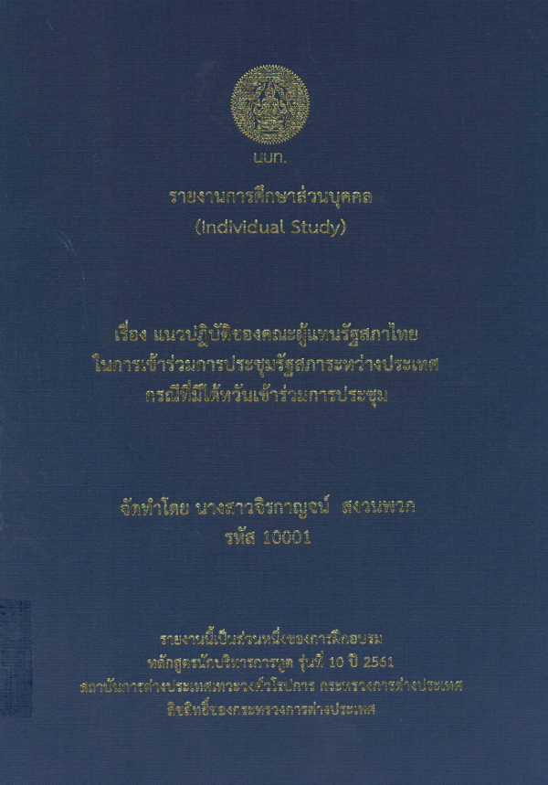 แนวปฏิบัติของคณะผู้แทนรัฐสภาไทยในการเข้าร่วมการประชุมรัฐสภาระหว่างประเทศ กรณีที่มีไต้หวันเข้าร่วมการประชุม / จิรกาญจน์ สงวนพวก.