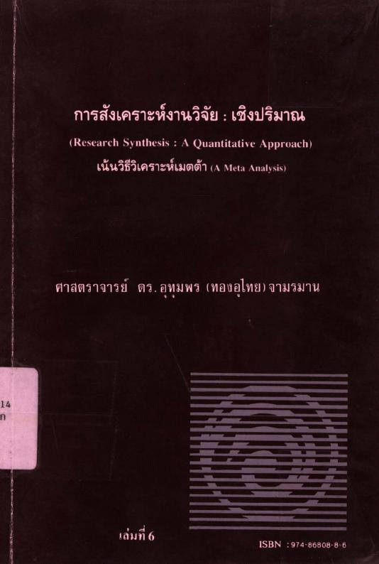 การสังเคราะห์งานวิจัย : เชิงปริมาณ เน้นวิธีวิเคราะห์เมตต้า เล่มที่ 6 / อุทุมพร (ทองอุไทย) จามรมาน.