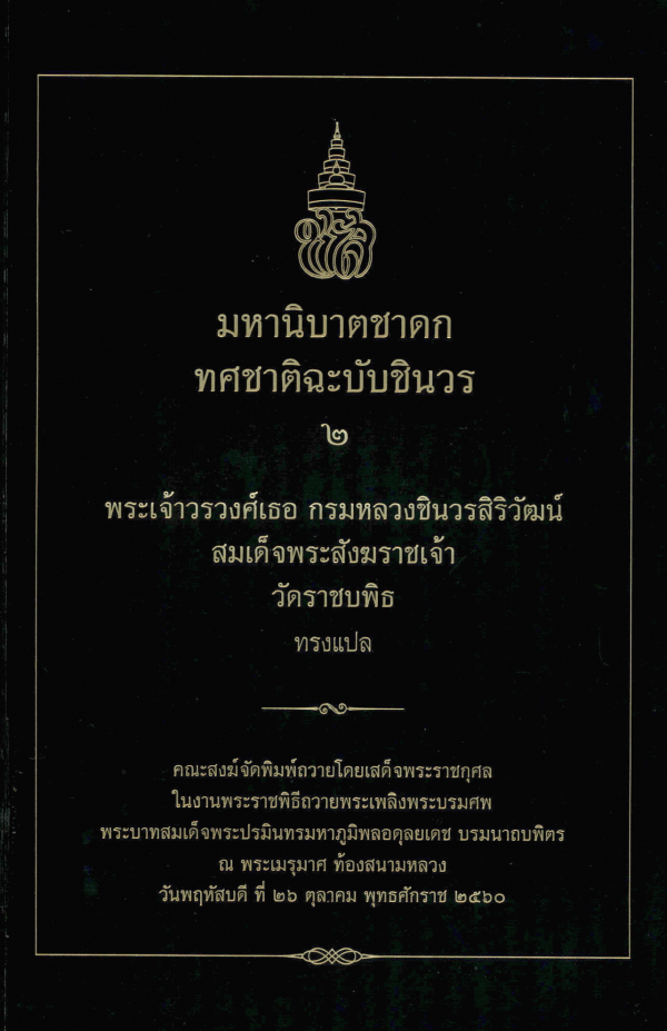 มหานิบาตชาดก ทศชาติฉะบับชินวร 2 / พระเจ้าวรวงศ์เธอ กรมหลวงชินวรสิริวัฒน์ สมเด็จพระสังฆราชเจ้า วัดราชบพิธ ทรงแปล.