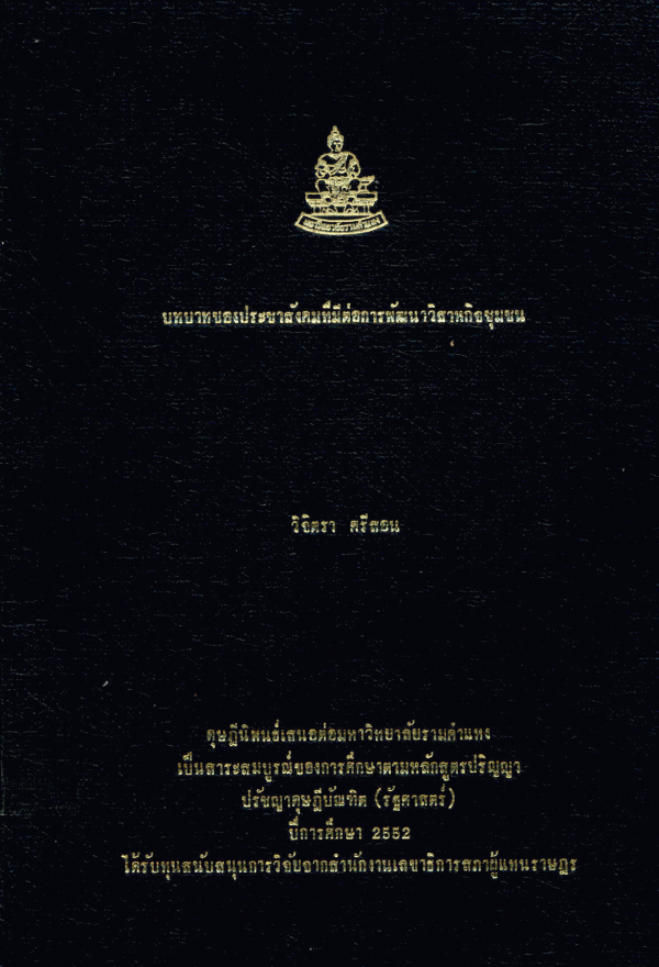 บทบาทของประชาสังคมที่มีต่อการพัฒนาวิสาหกิจชุมชน / วิจิตรา ศรีสอน.