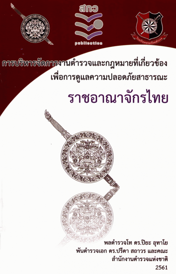 การบริหารจัดการงานตำรวจและกฎหมายที่เกี่ยวข้องเพื่อการดูแลความปลอดภัยสาธารณะ ราชอาณาจักรไทย / ปิยะ อุทาโย... [และคนอื่น ๆ].