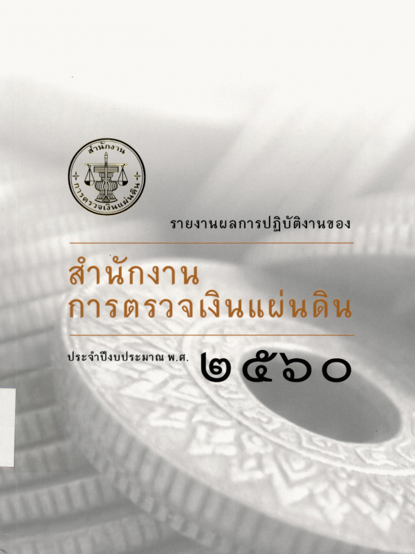 รายงานผลการปฏิบัติงานของสำนักงานการตรวจเงินแผ่นดิน ประจำปีงบประมาณ พ.ศ. 2560 / สำนักงานการตรวจเงินแผ่นดิน.