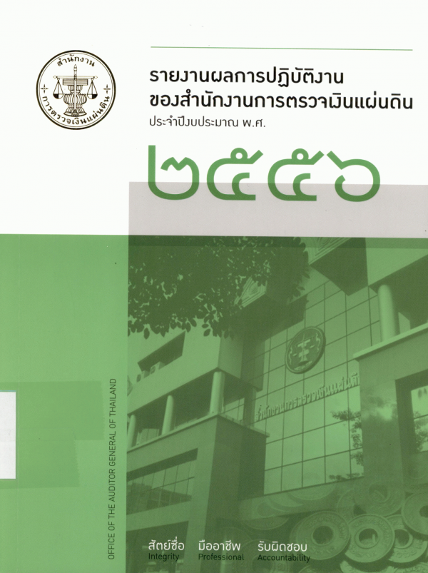 รายงานผลการปฏิบัติงานของสำนักงานการตรวจเงินแผ่นดิน ประจำปีงบประมาณ พ.ศ. 2556 / สำนักงานการตรวจเงินแผ่นดิน.