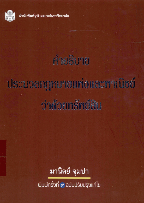 คำอธิบายประมวลกฎหมายแพ่งและพาณิชย์ว่าด้วยทรัพย์สิน / มานิตย์ จุมปา.