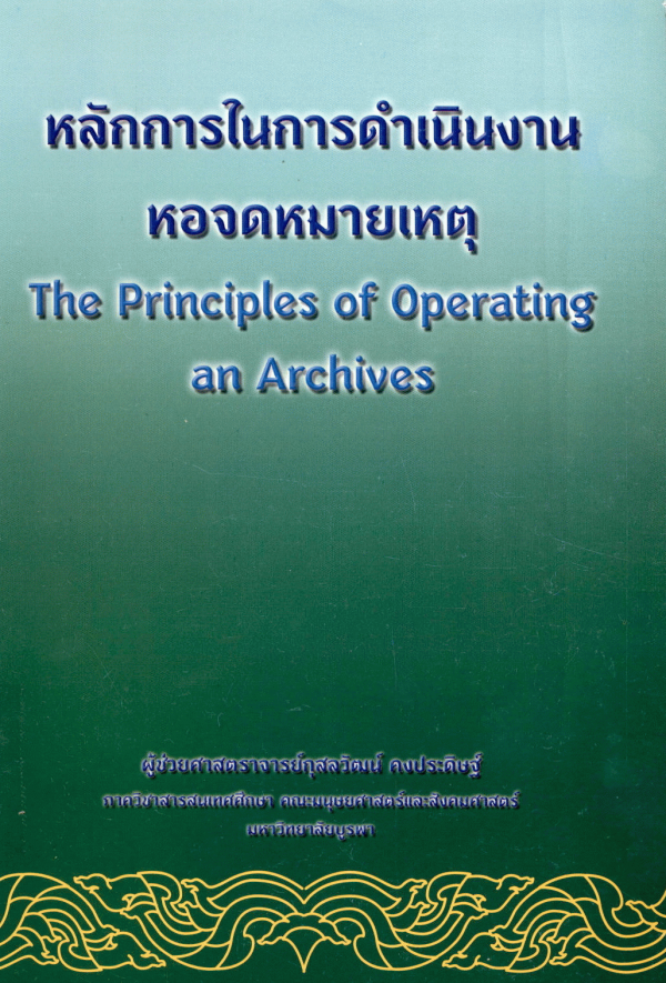 หลักการในการดำเนินงานหอจดหมายเหตุ = The Principles of Operating an Archives / กุสลวัฒน์ คงประดิษฐ์.