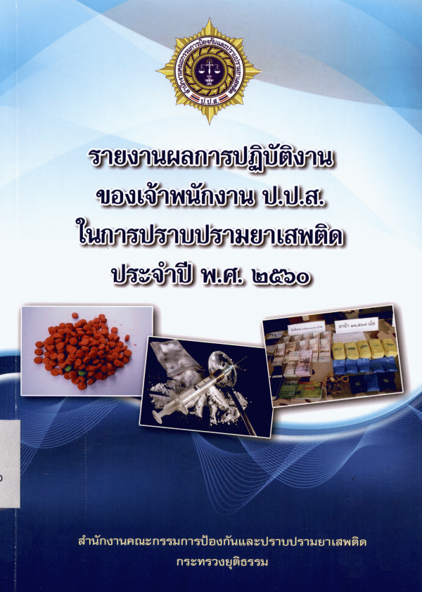 รายงานผลการปฏิบัติงานของเจ้าพนักงาน ป.ป.ส. ในการปราบปรามยาเสพติด ประจำปี พ.ศ. 2560 / สำนักงานคณะกรรมการป้องกันและปราบปรามยาเสพติด.