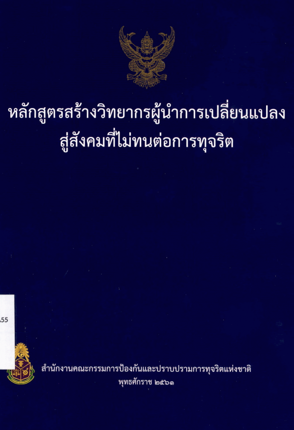หลักสูตรสร้างวิทยากรผู้นำการเปลี่ยนแปลงสู่สังคมที่ไม่ทนต่อการทุจริต / สำนักงานคณะกรรมการป้องกันและปราบปรามการทุจริตแห่งชาติ.