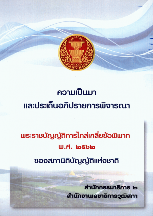 ความเป็นมาและประเด็นอภิปรายการพิจารณาพระราชบัญญัติการไกล่เกลี่ยข้อพิพาท พ.ศ. 2562 ของสภานิติบัญญัติแห่งชาติ / กลุ่มงานคณะกรรมาธิการวิสามัญ 3 สำนักกรรมาธิการ 2 สำนักงานเลขาธิการวุฒิสภา.