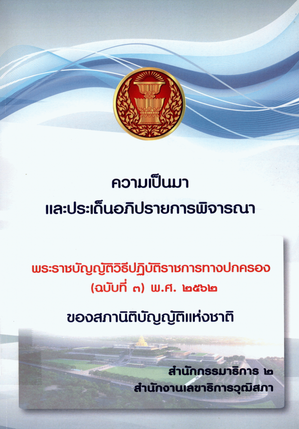 ความเป็นมาและประเด็นอภิปรายการพิจารณาพระราชบัญญัติวิธีปฏิบัติราชการทางปกครอง (ฉบับที่ 3) พ.ศ. 2562 ของสภานิติบัญญัติแห่งชาติ / กลุ่มงานคณะกรรมาธิการวิสามัญ 3 สำนักกรรมาธิการ 2 สำนักงานเลขาธิการวุฒิสภา.