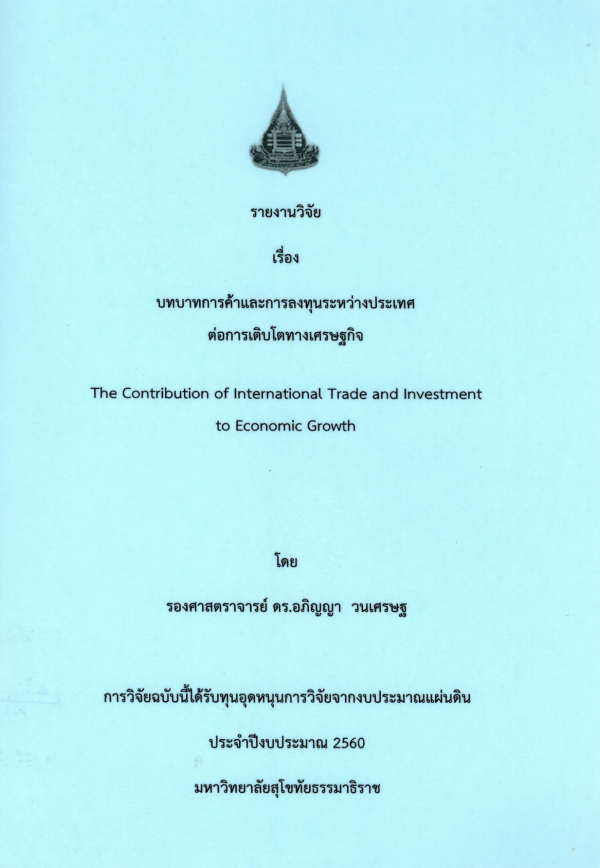 บทบาทการค้าและการลงทุนระหว่างประเทศต่อการเติบโตทางเศรษฐกิจ / อภิญญา วนเศรษฐ.