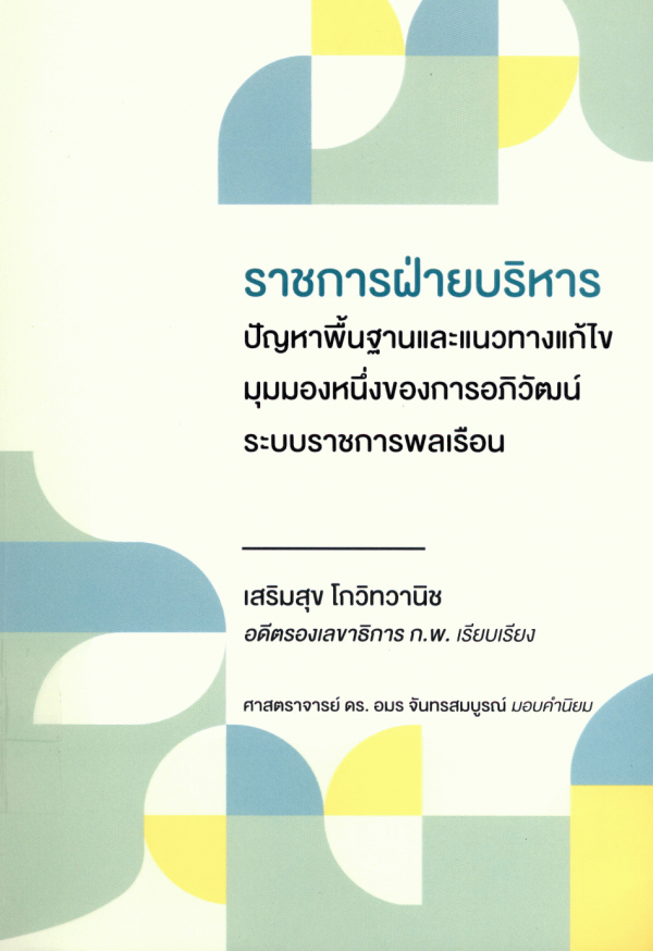 ราชการฝ่ายบริหารปัญหา พื้นฐานและแนวทางแก้ไข มุมมองหนึ่งของการอภิวัฒน์ระบบราชการพลเรือน / เสริมสุข โกวิทวานิช.