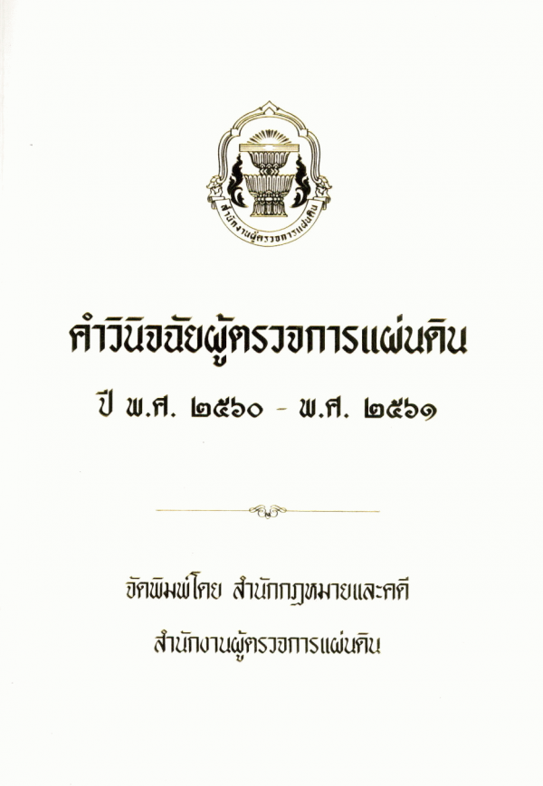 คำวินิจฉัยผู้ตรวจการแผ่นดิน ปี พ.ศ. 2560 - พ.ศ. 2561 / สำนักกฎหมายและคดี สำนักงานผู้ตรวจการแผ่นดิน.